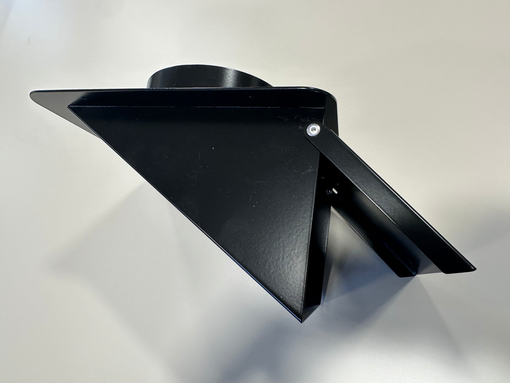 This is an all aluminum 4" soffit vent with a black powder coat finish. The collar is sized for a crimped 4” duct. A high quality soffit vent to replace those cheap plastic units.